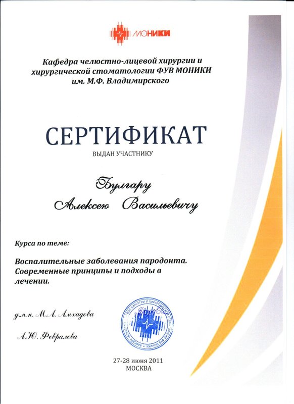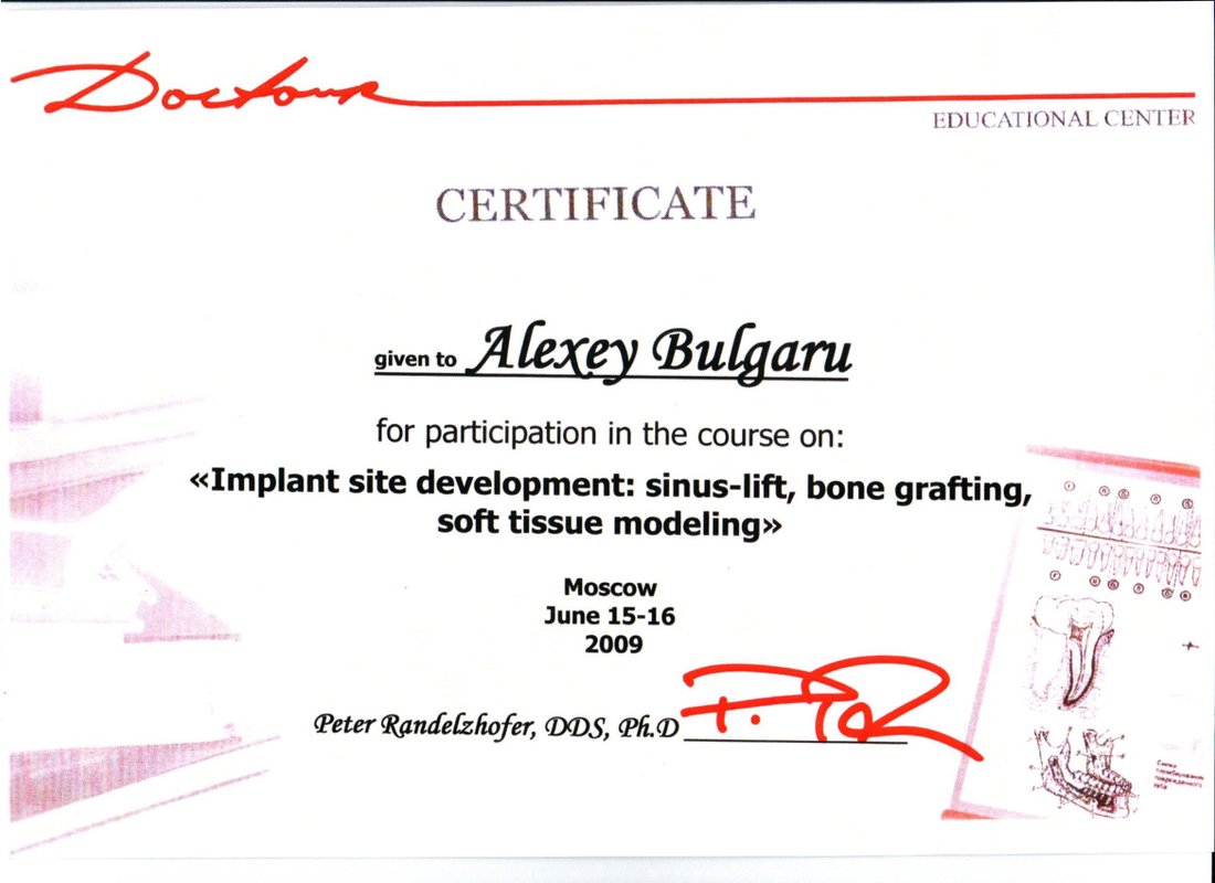 Мы давно ездим к нашему доктору Алексею Васильевичу Булгару, потому что он внушает доверие своим профессионализмом. Последний раз я обратилась к нему, чтобы отремонтировать имплант.
