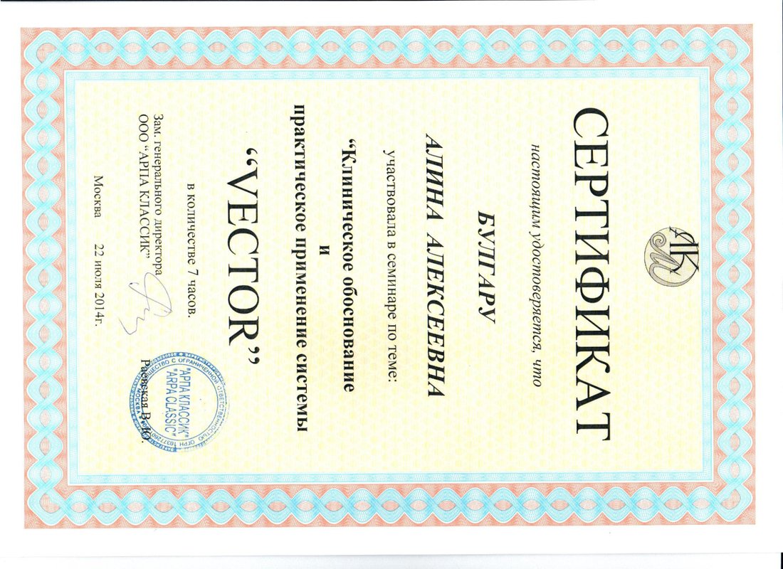 Я не первый раз у врача Булгару Алексея Васильевича, он делает свою работу отлично, очень внимательный и обходительный, все проблемы решает тут же. Несколько лет назад делала в клинике виниры и керамику, сейчас обратилась, так как заболел зуб.